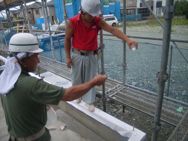 まず建物四隅を神酒にて、お清めします!
