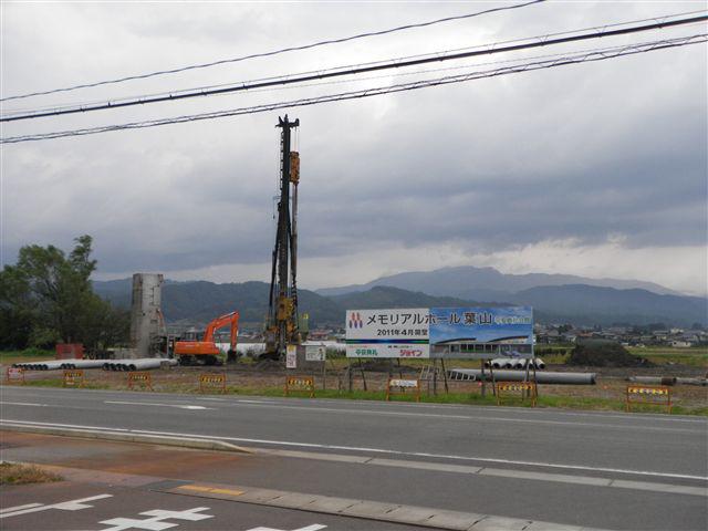河北町ひな市のコンビニPから名称の通り葉山の山並みをバックに