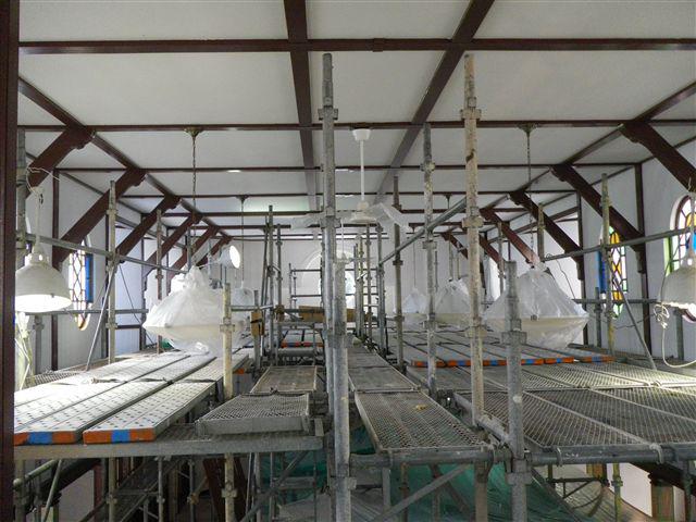 天井、及び高所部分の壁の左官工事がかんりょうしたようです。