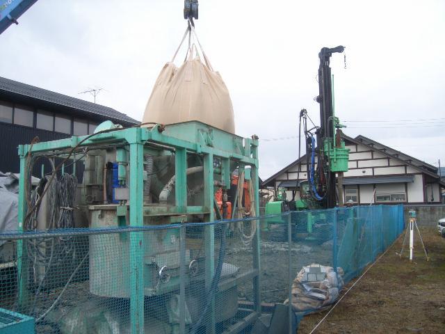 昨日に引き続き、地盤改良工事(柱状改良工事)です。