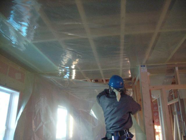 厚さ0.2mmの気密シートを隙間なく貼っていきます。