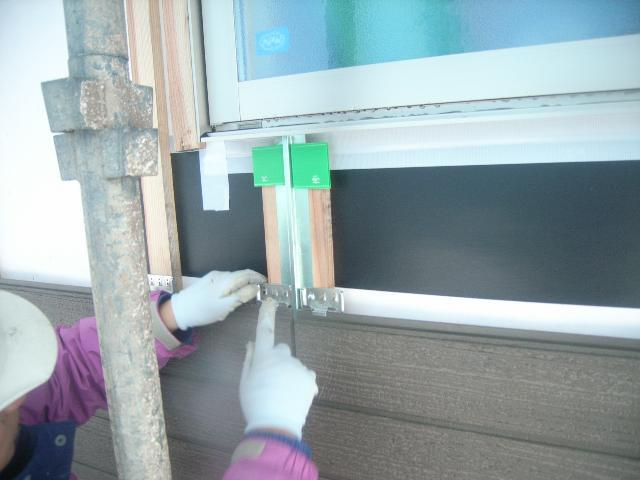 16mmの窯業系サイディングを金具で留めていきます。