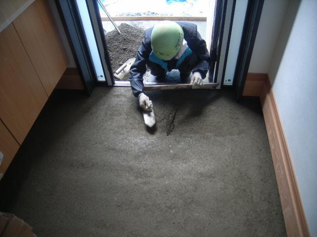 ▼東根市Mの樹団地 TS様邸新築工事-46 玄関タイル下地モルタル 『テクノストラクチャーで建てる山形の長期優良住宅』