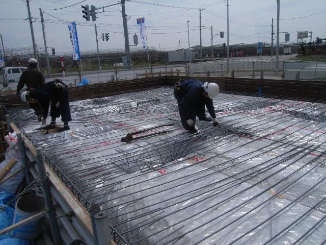 土間シート敷きも完了し、基礎配筋開始です。
