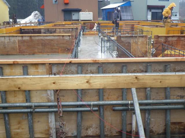 基礎土間スラブの打設が完了し、内部の立上型枠の施工に入っております。