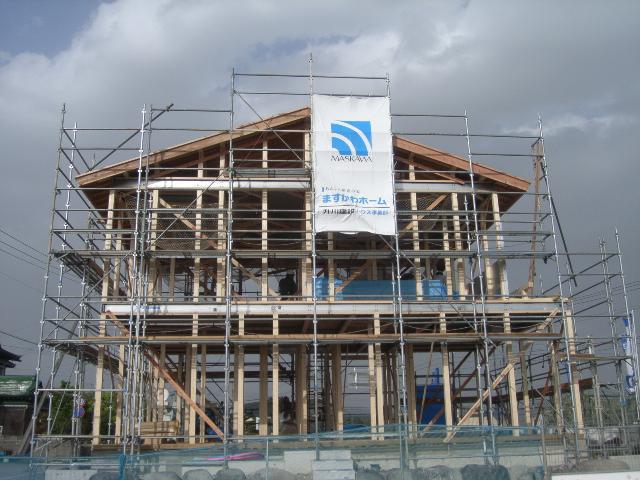 ▼東根市 MS様邸新築工事-15 軸組み建て方2日目 『テクノストラクチャーで建てる山形の長期優良住宅』