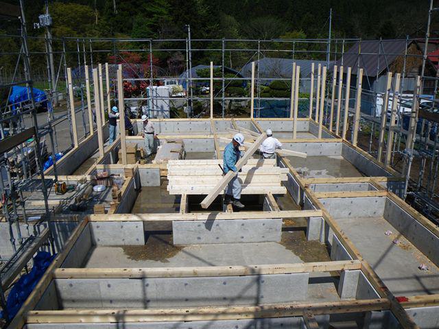 ▼鮭川村 KS様邸新築工事-13 建方開始 『テクノストラクチャーで建てる山形の家』