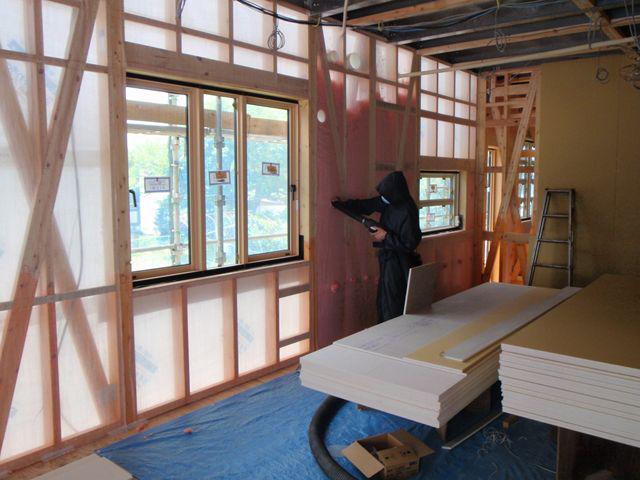 断熱工事が始まりました。BIB工法という断熱工事です。