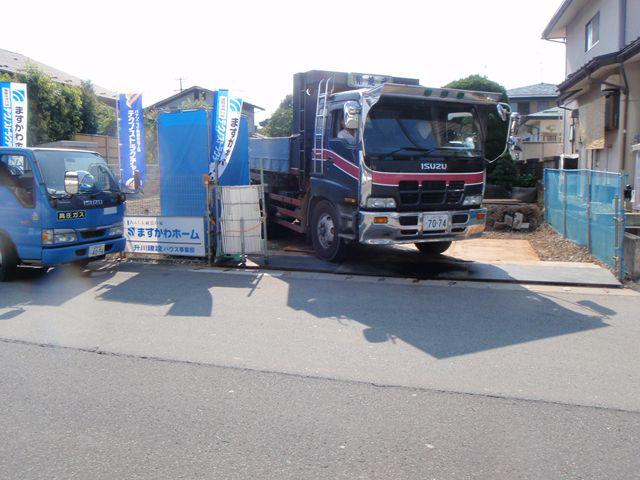午前中 現況地盤のすきとりを行い発生土の搬出を行いました。
