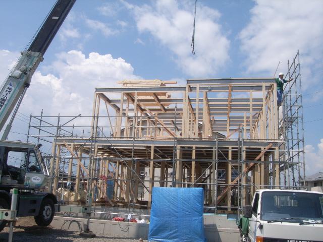 ▼山形市 JS様邸新築工事-12 軸組み建て方2日目 『テクノストラクチャーで建てる山形の長期優良住宅』