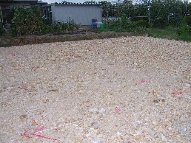 杭の高さが2種類ある為、赤い紐と青い紐の2種類で杭芯を出して、間違いのないように管理しております。
