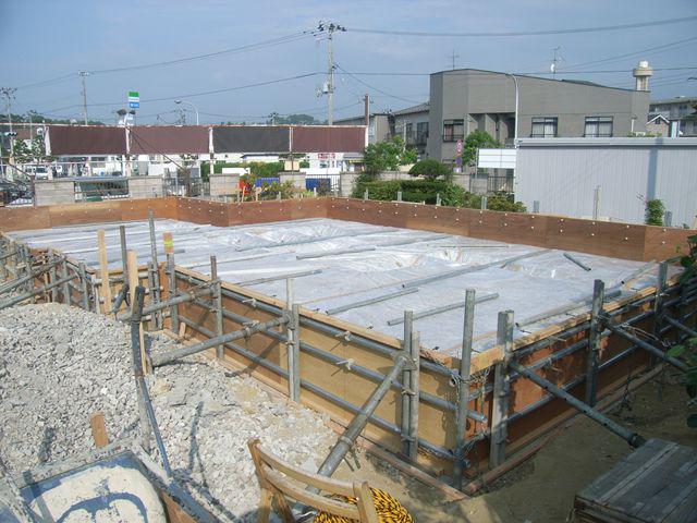 昨日、外周の型枠と防湿ビニール敷き込み完了しました。