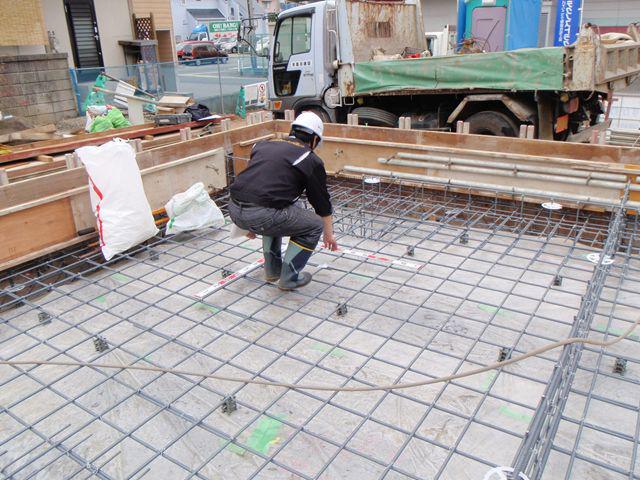 午前中 鉄筋配筋完了後 ホームリサーチ 配筋検査を受けました。