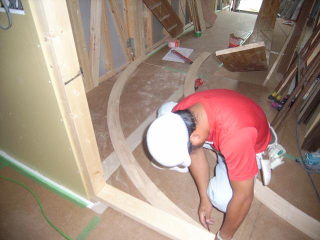 廊下ではいよいよR階段の取付けに入っております。