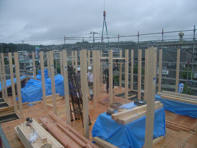 昨日に引き続き軸組の建て方です。