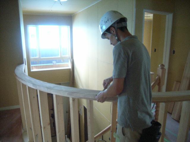 階段の笠木取付けです。
