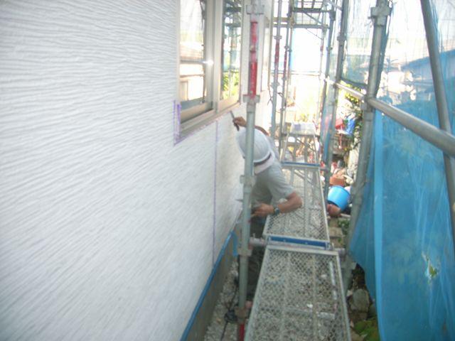 外壁のシーリングを行っています。
