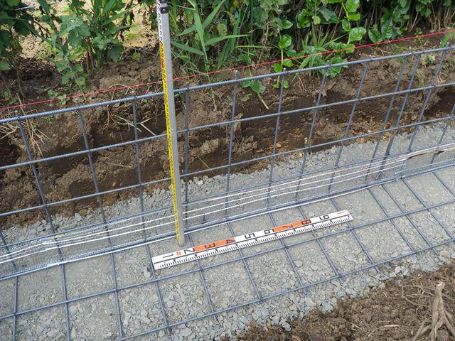 境界の土止めコンクリートの鉄筋工事が終了しました。