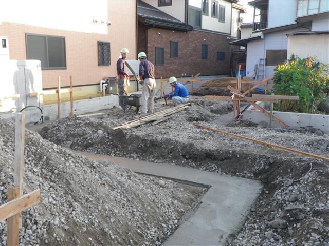 根切、砕石事業に続き捨コンクリートの打設も会わりました。