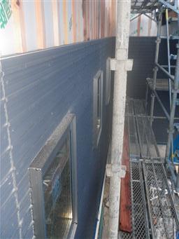 外部は乾式タイルのベースサイディング貼をおこなっております。