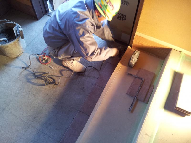 玄関タイル貼りが始まりました。