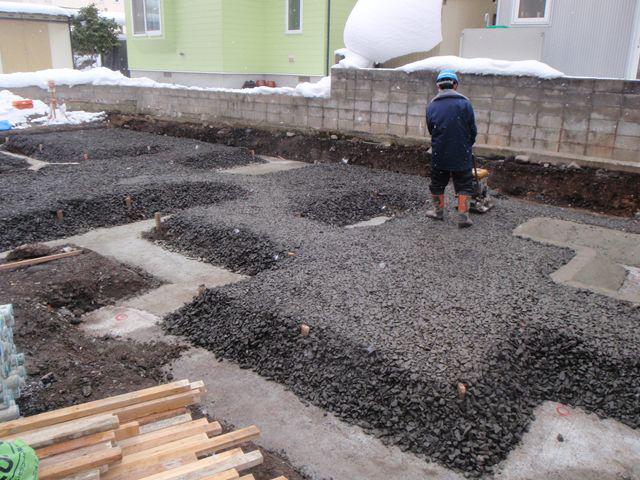 土工事も終盤に差し掛かり 土間砕石 基礎下の捨てコン打設