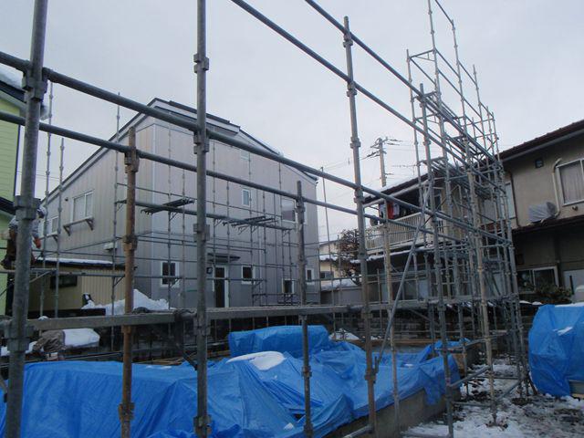 昨日外部足場を建てました。