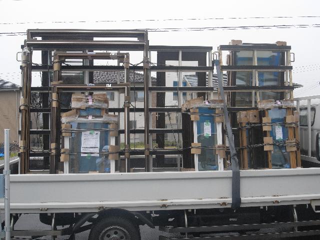 アルミサッシが搬入されてきました。