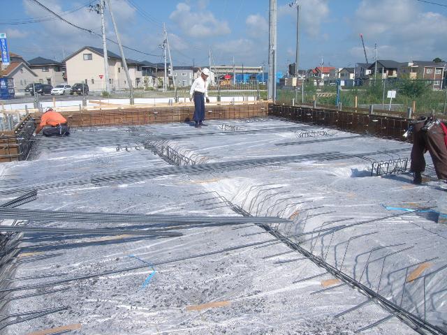 昨日から鉄筋やさんが乗り込み、基礎の配筋を行っております。