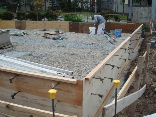 今日は3人で、基礎コンクリートの型枠を組み立てる作業です。
