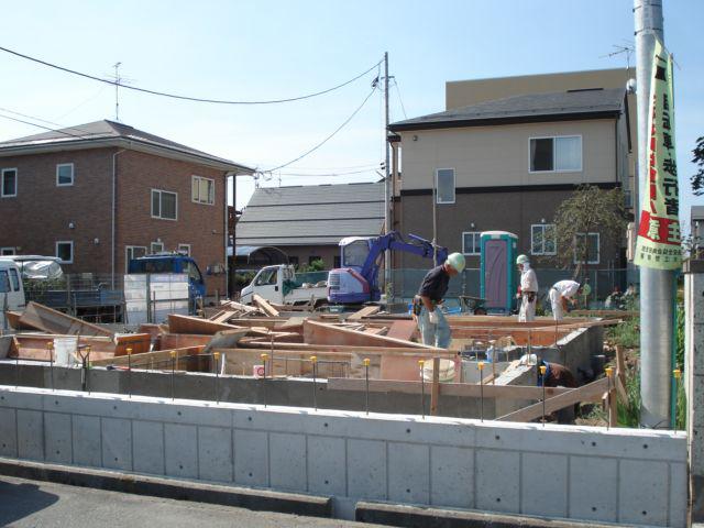 今日は内部の基礎立上り型枠組立をしています。