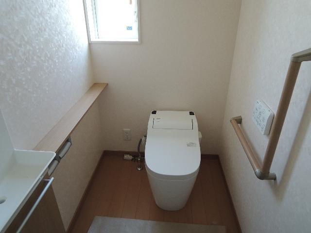 2階のトイレは、パナソニック社の新商品『アラウーノV』です。小洗浄で3L、大洗浄で4.6Lの水しか使わない『省エネ』タイプのトイレです。