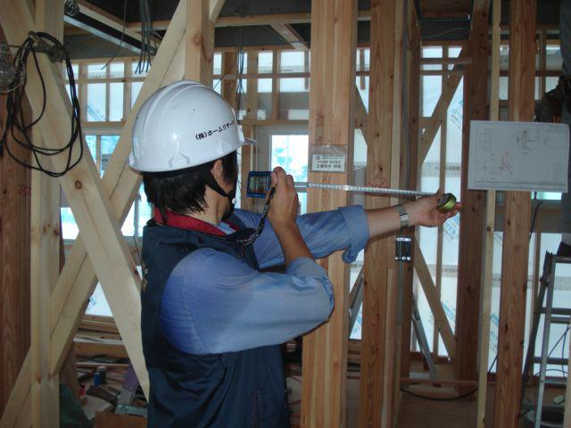 今日の午前中は、第三者の立場で品質検査を行うホームリサーチから、部材寸法や金物取付状況等の検査をして頂きました。