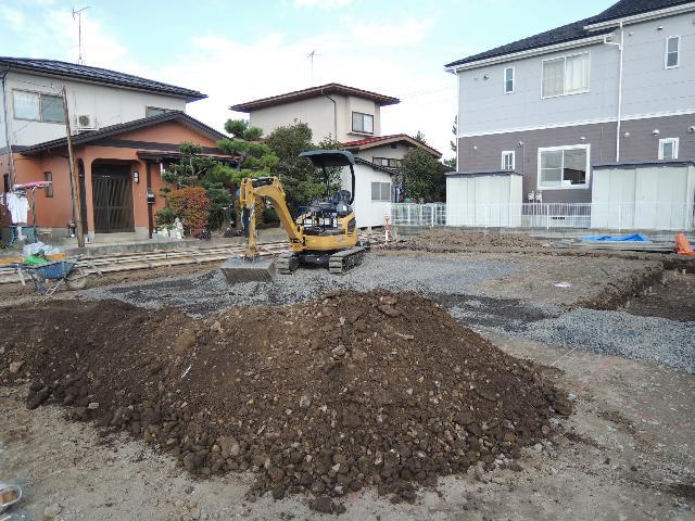 外構の土留め工事を先行しておりましたが、建物の基礎工事も始まりました。