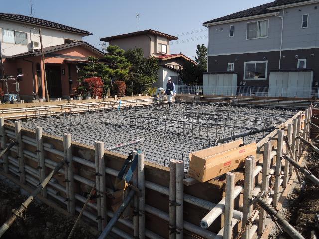 基礎配筋が完了し、瑕疵保険『ハウスジーメン』・第三者検査機関『ホームリサーチ』による配筋検査を行いました。