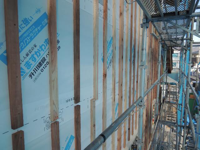 外部通気胴縁の取付けがほとんど終了しておりました。