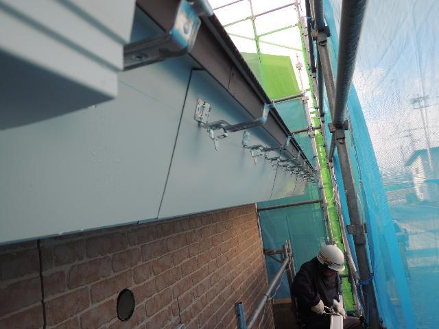 屋根の軒樋(横樋)の取付け作業です。