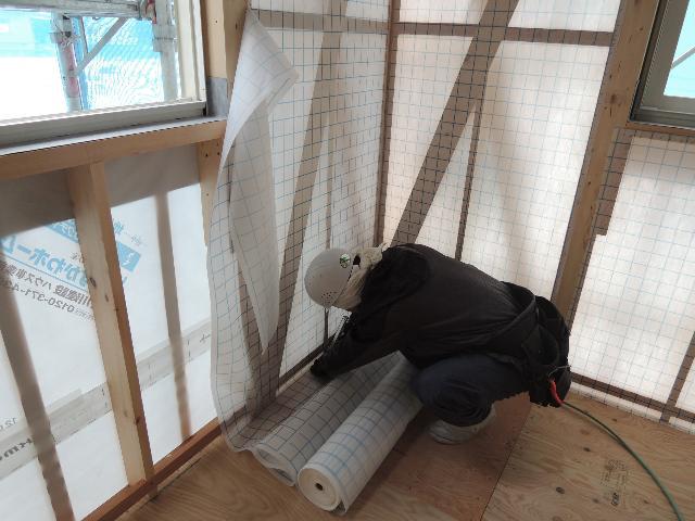▼山形市 TT様邸新築工事 20 壁断熱工事(シート貼) 『テクノストラクチャーで建てる山形の家』