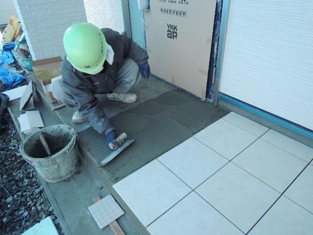 ▼天童市 DI様邸新築工事 43 玄関タイル貼 『テクノストラクチャーで建てる山形の長期優良住宅』