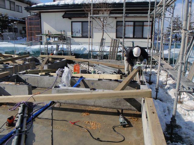 土台の据付後 シートを張って