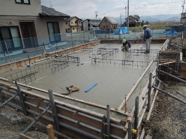 1回目のコンクリート打設が無事終了し、本日は内部の立上りの墨出し作業中です。