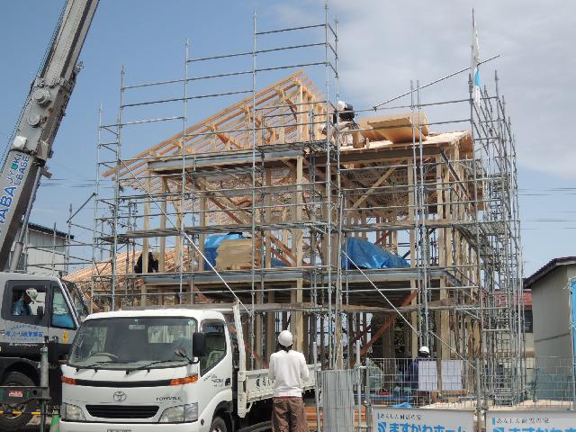 ▼東根市 AH様邸新築工事 10 軸組み建て方2日目 『テクノストラクチャーで建てる長期優良住宅』