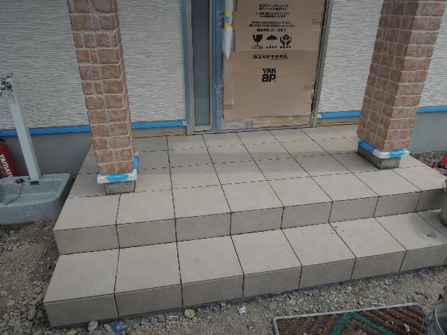 ▼河北町 KN様邸新築工事 29 玄関タイル貼り 『テクノストラクチャーで建てる長期優良住宅』