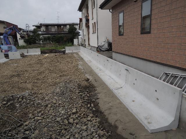 当現場は住宅の基礎をつくる前にL型ヨウヘキを設置し、盛り土するところから工事スタートです。