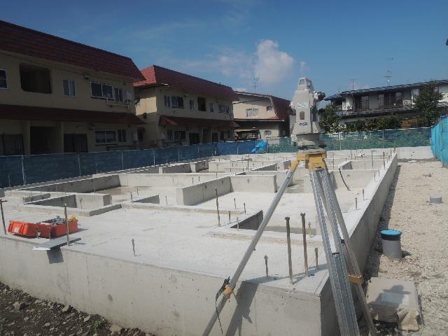 大工さんと一緒に、基礎の天端に土台の墨(位置)を出してきました。