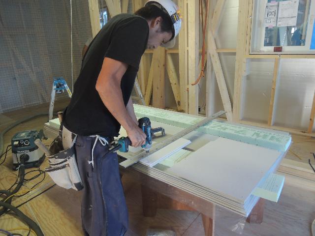 断熱やさんは1階で作業中、もう少しで壁終了です。