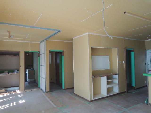 内装工事(クロスやさん)の工事完了後に取付けるドア等の取付けはまだですが、大工さんの造作工事とりあえず終了です。