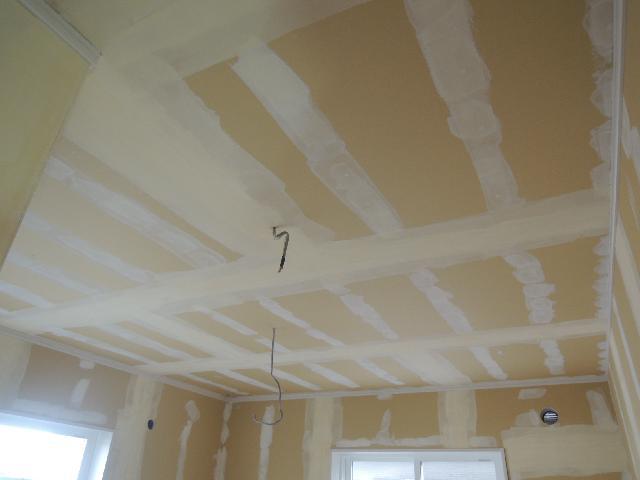 パテ処理が終了し、早速、天井クロスから貼り始めておりました。
