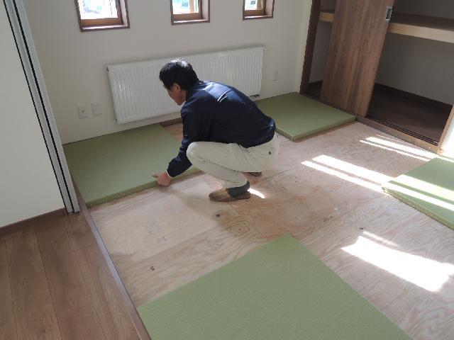 事前に寸法を測り、製作しておりました畳を敷込みしていきます。