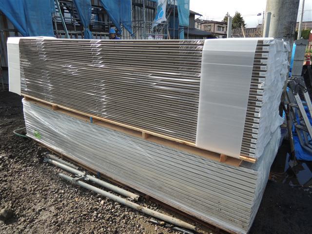外壁材が搬入され、外壁工事スタートです。まずは土台水切取付から工事開始です。